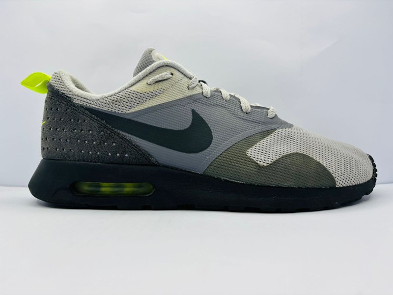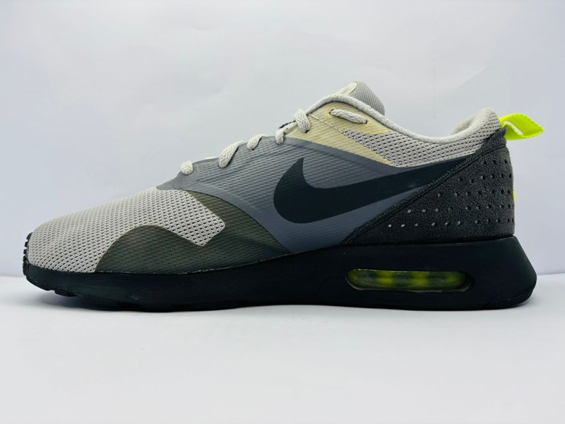 Embrace vintage athletic style with a modern twist in the Nike Air Max Tavas sneakers. This model harks back to the iconic original running shoe design, offering a sleek silhouette and essential cushioning for all-day wear. The classic grey colorway is accented with a striking neon/flash lime green “Max Air” unit, providing a pop of vibrant style.